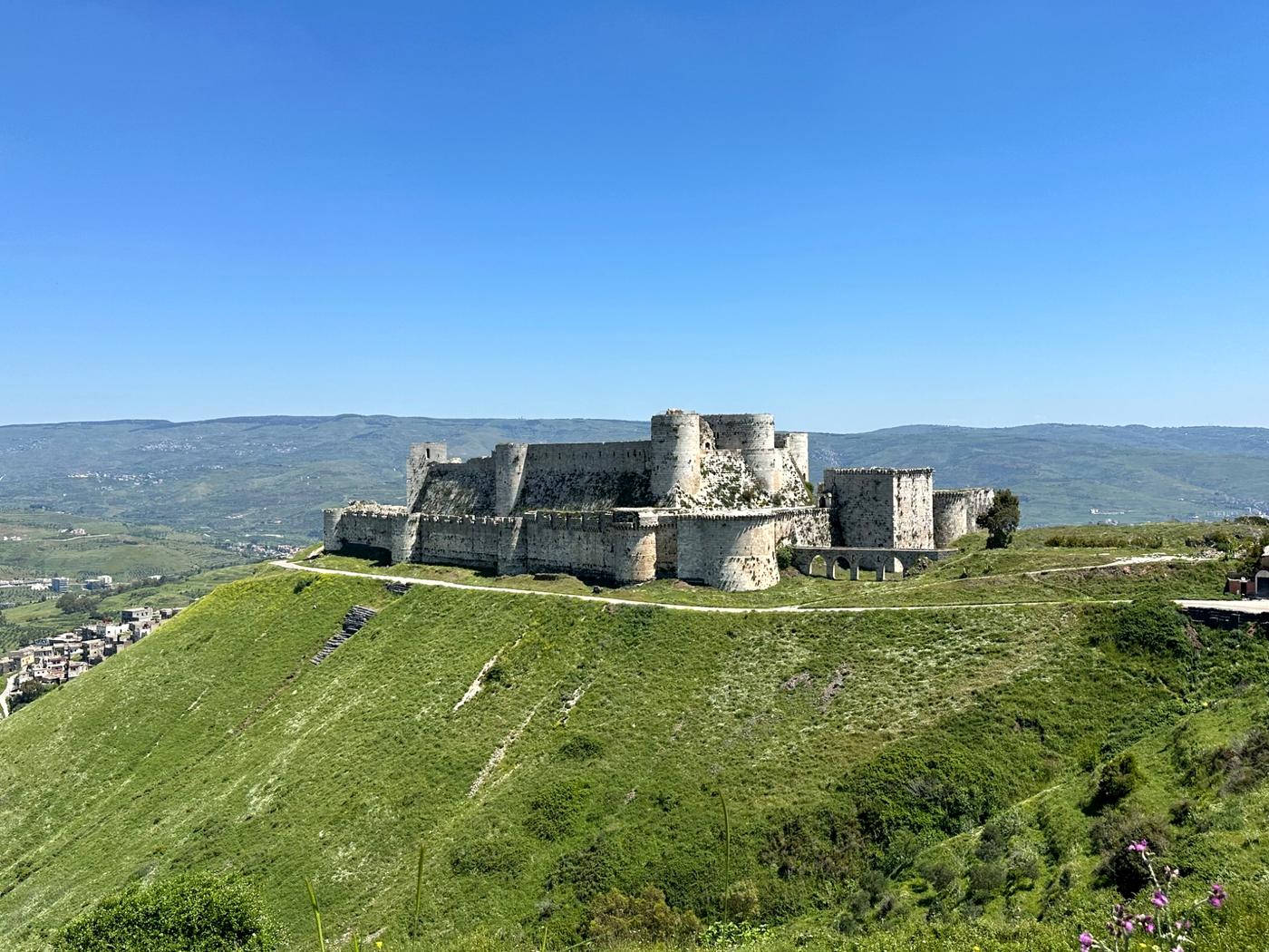 Continue to the legendary Krak des Chevaliers, one of the best-preserved Crusader castles in the world.